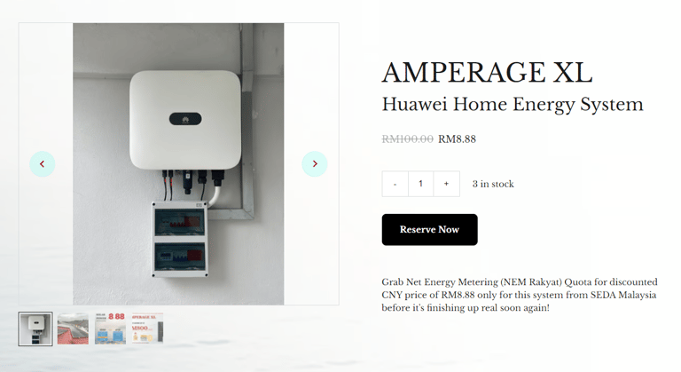 Secure your NEM Rakyat quota for just RM 8.88! Available for a limited time. Simply select your preferred Amperage Smart Home power system and complete your reservation with an online payment at the bottom of the page.