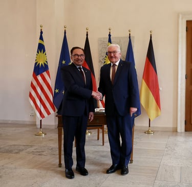 Anwar is scheduled to have a private meeting with German Chancellor Olaf Scholz and pay President Frank-Walter Steinmeier a courtesy call. These gatherings will cover a wide range of subjects, both national and international. Do you recall last year's visit to Malaysia by President Steinmeier? He lauded Malaysia as a crucial location for German businesses, and Anwar is now carrying on their legacy.